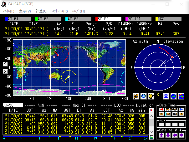 9月4日の記事「CALSAT32 ローテーターコントローラー KR-400用 制作」で「CALSAT32の設定、使い方については別記事にします。」と書きましたが、百姓が忙しくてそのままになっていました。だいぶ時間が経ってしまいましたが、CALSAT32の設定と使い方について書いておきます。