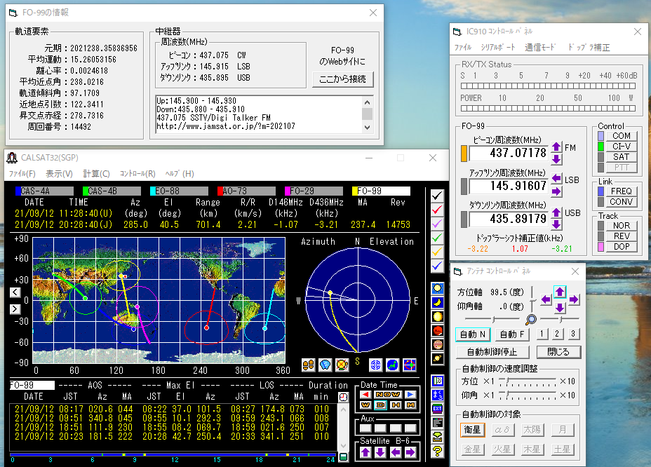 また、アンテナコントロールを使ってFO-99のSSTV受信をやってみたのでその話も書きたいと思います。
