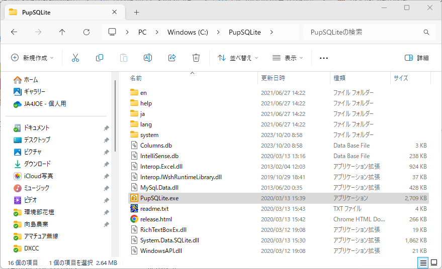 まず、sqliteのデータベース管理ソフト「PupSQLite」をインストールします。(私は以前から使っていました。)