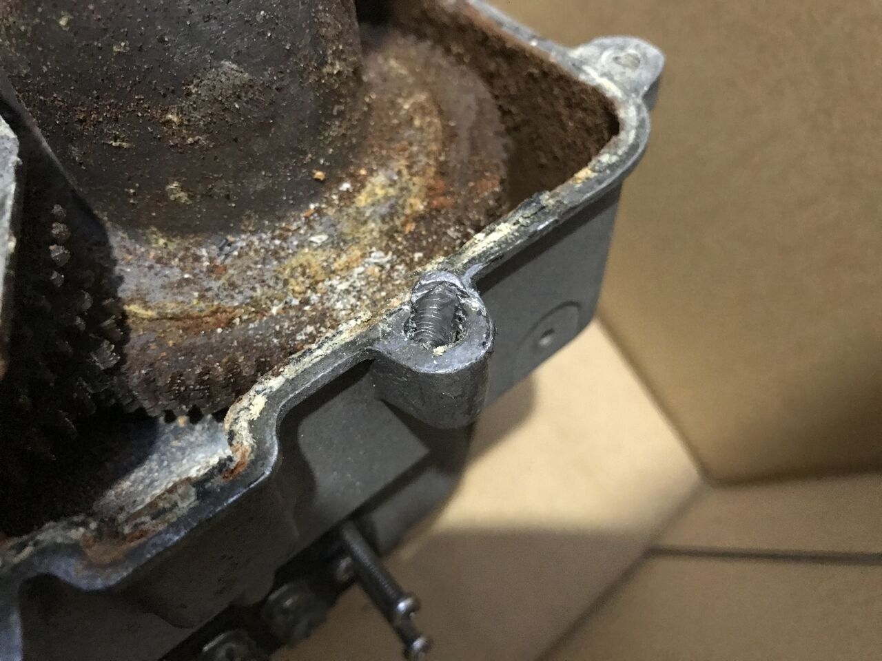 ハウジングのネジを壊した箇所は6㎜のドリルで穴を貫通させてグラインダーで平たくしてボルトナットで留まるようにしました。