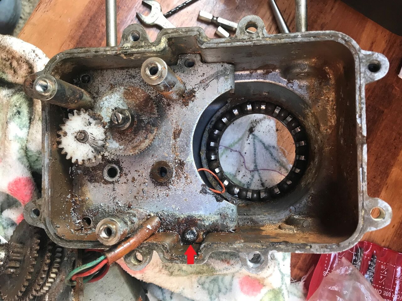 次にギヤマウントを外そうとしましたが、今度はギヤマウントのプラスネジが4本のうち2本が回りませんでした。