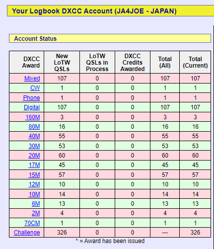 LoTWは反映まで時間がかかる事がありますが、1日以上かかるのはひどいですね。