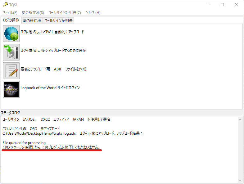 以上、LoTW登録とTQSLの使い方でした。