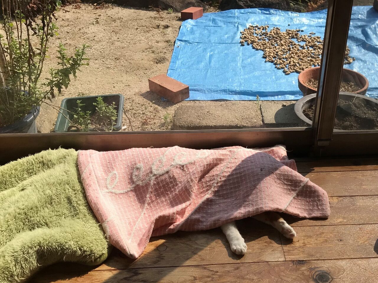 今日は天気がいいので縁側で日向ぼっこしてます。