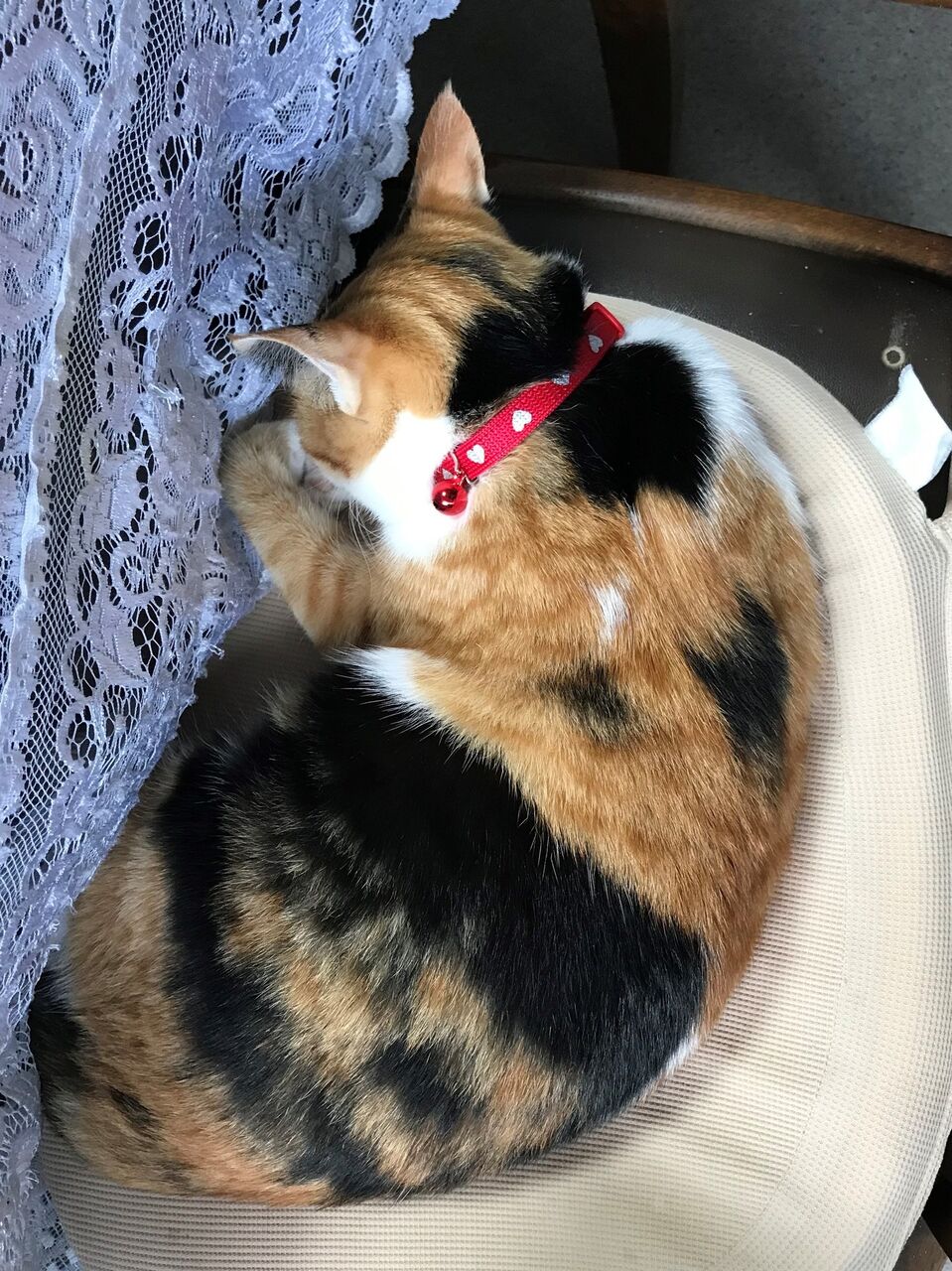 売ってる首輪は鈴がついているものが多いですね。鈴は嫌がるかとも思いましたが、あまり気にならないようです。