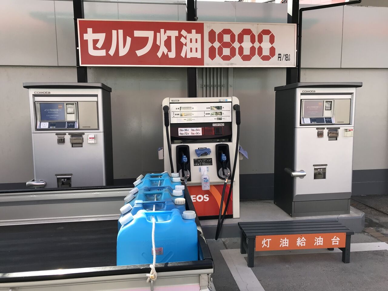 昨シーズンの灯油が少し残っていましたが、すぐに無くなりそうなので灯油を買いに行きました。