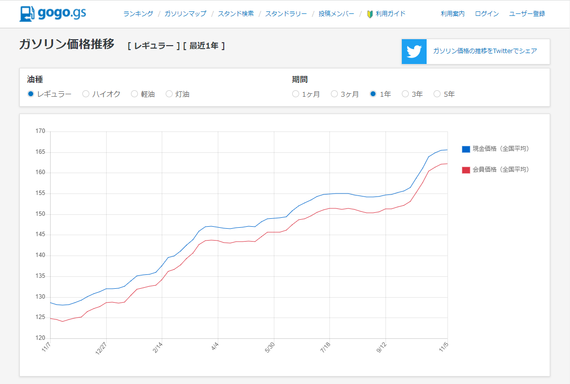 気になってガソリンと灯油の価格推移を見てみました。