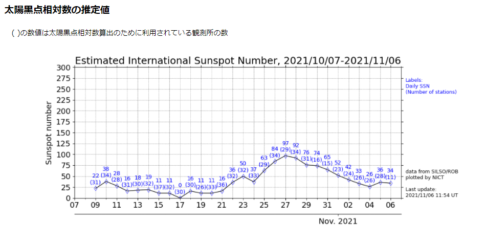 10月27日前後にSSN(太陽黒点数)が増えていたようです。