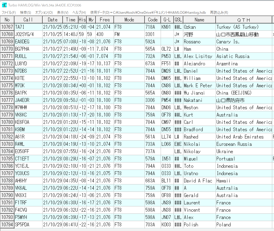 10月はこの時期にしては珍しくハイバンドが良く開けていたので、交信数が増えました。