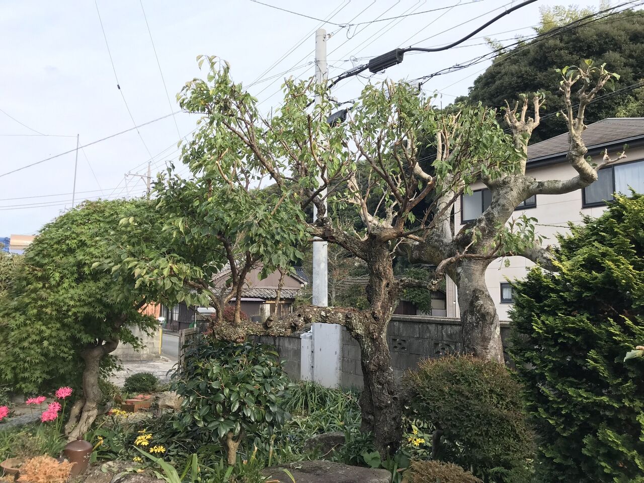 庭木は松が松くい虫で枯れて、ツゲが電柱工事で引っこ抜かれてなどで少しづつ減っています。でも一本一本が大きくなっているので剪定は大変です。3年に一度くらい大きく切り詰めないと、高くなりすぎて脚立が届かなくなります。
