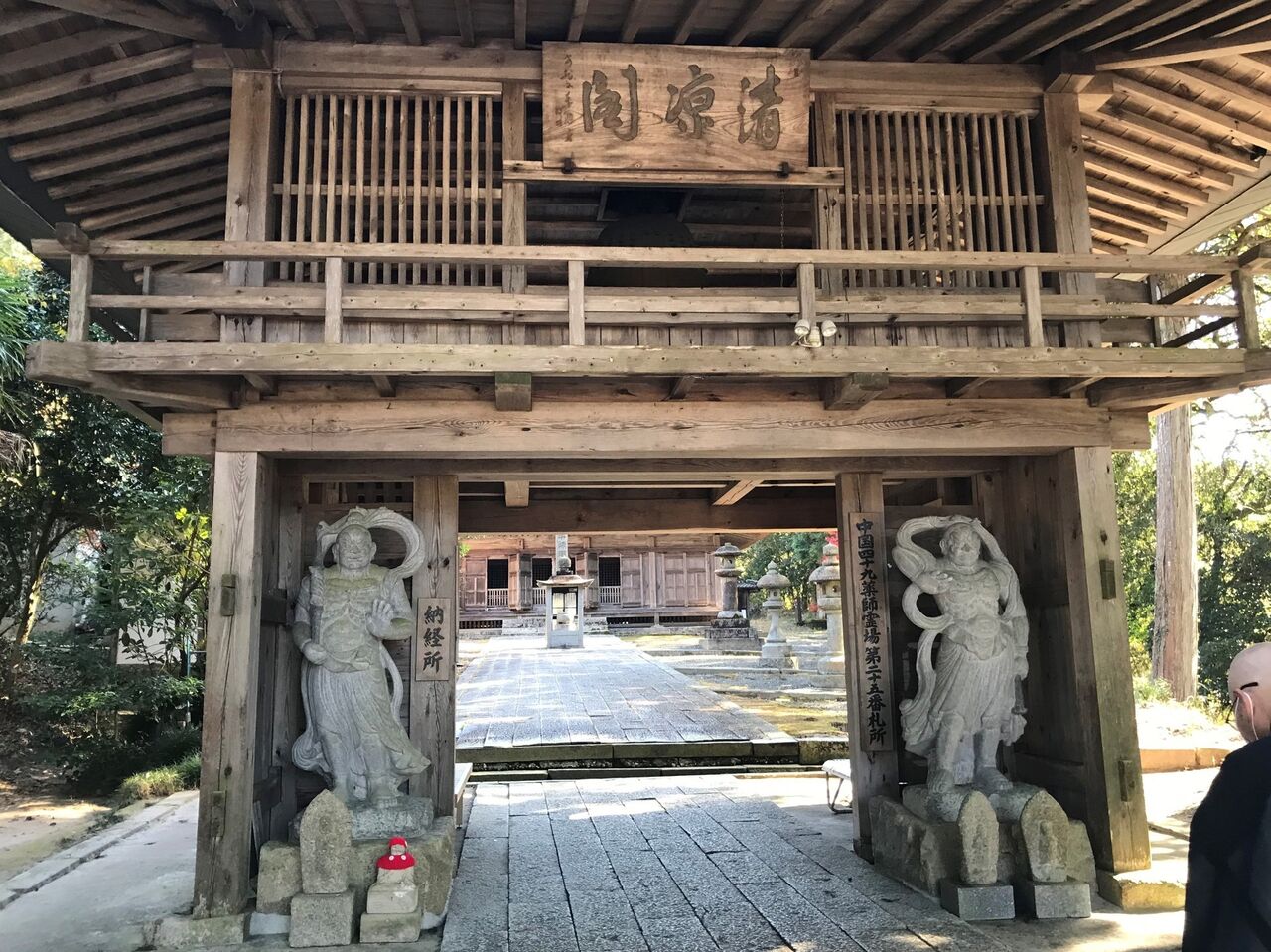 月輪寺(がちりんじ)到着。山門で住職に迎えていただきました。
