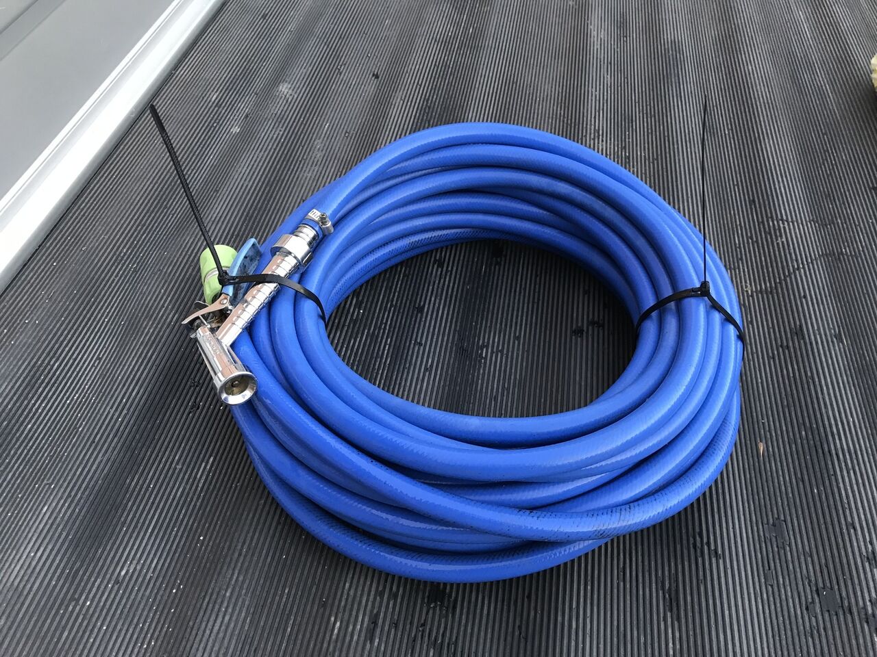 長いし重いので巻いて片付けるのに半日かかりました。腕と肩が痛くなりました。(^^; 全部足すと250mくらいあります。