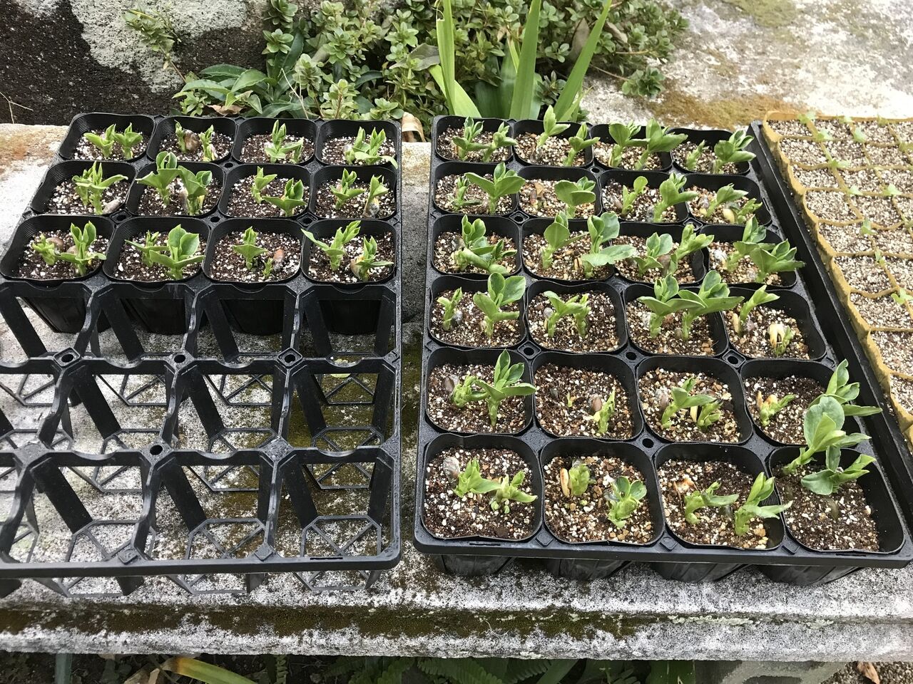 ニンジン、ゴボウは一回目の発芽率が悪かったので種を蒔きなおしましたが、ニンジンは2回目も1/4くらいしか芽が出ませんでした。ゴボウはほぼ全部の植穴で芽が出ました。レタスはそろそろ収穫できそうです。