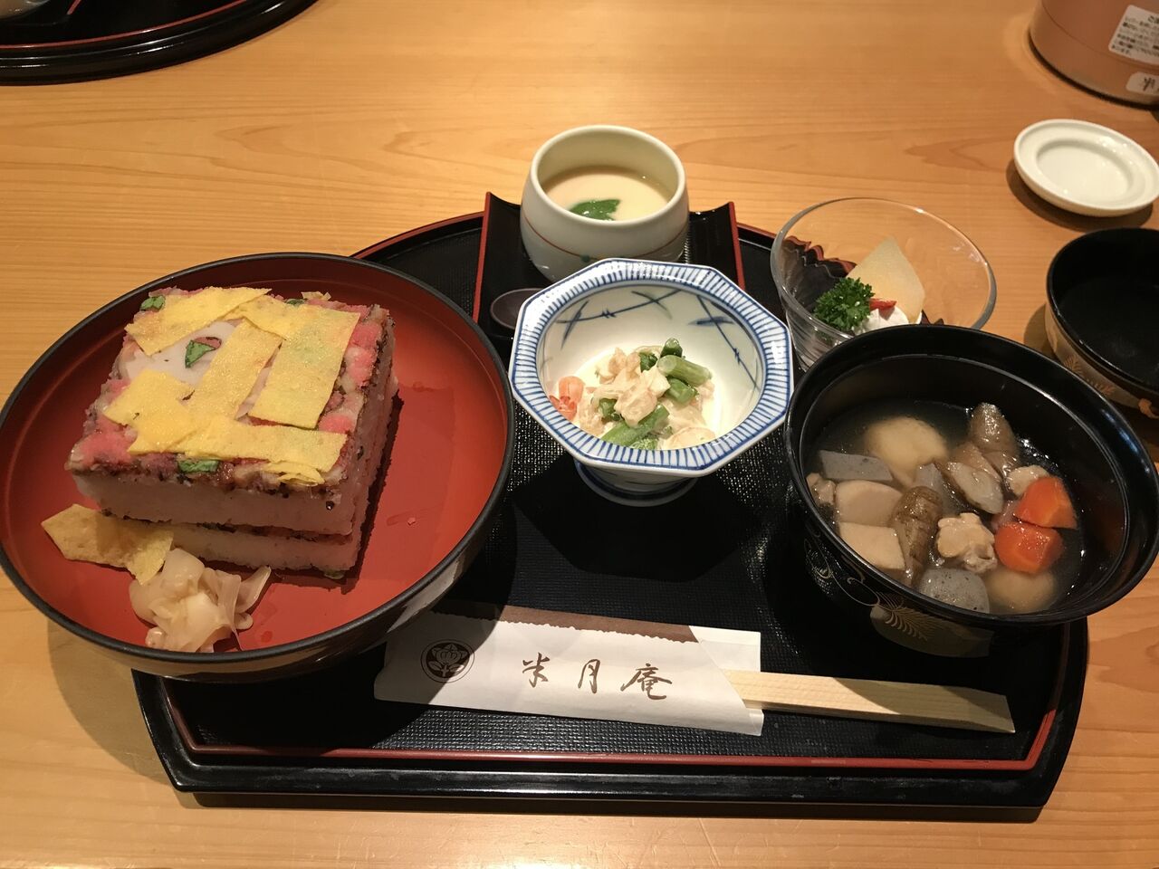 昼食は半月庵という旅館のレストランで郷土料理の岩国寿司と大平をいただきました。