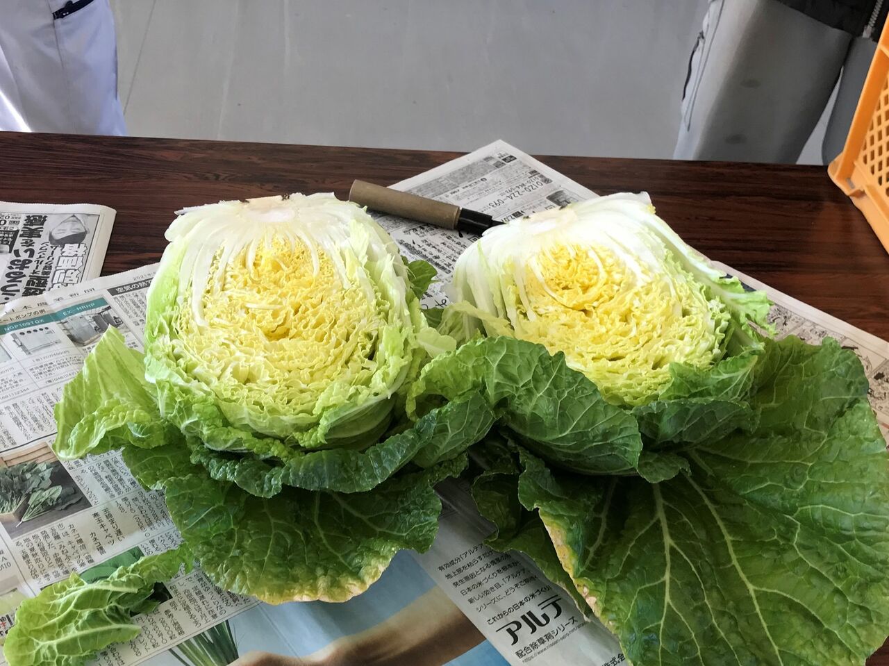 Oさんの白菜を切って出来を確認しました。