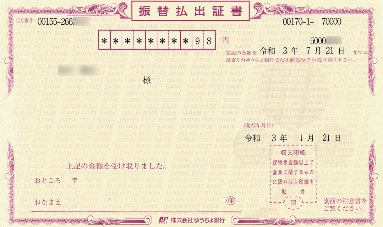 年末だからという訳ではないですが、机に積んでいた紙類を整理したら「振込払出証書」というのが出てきました。