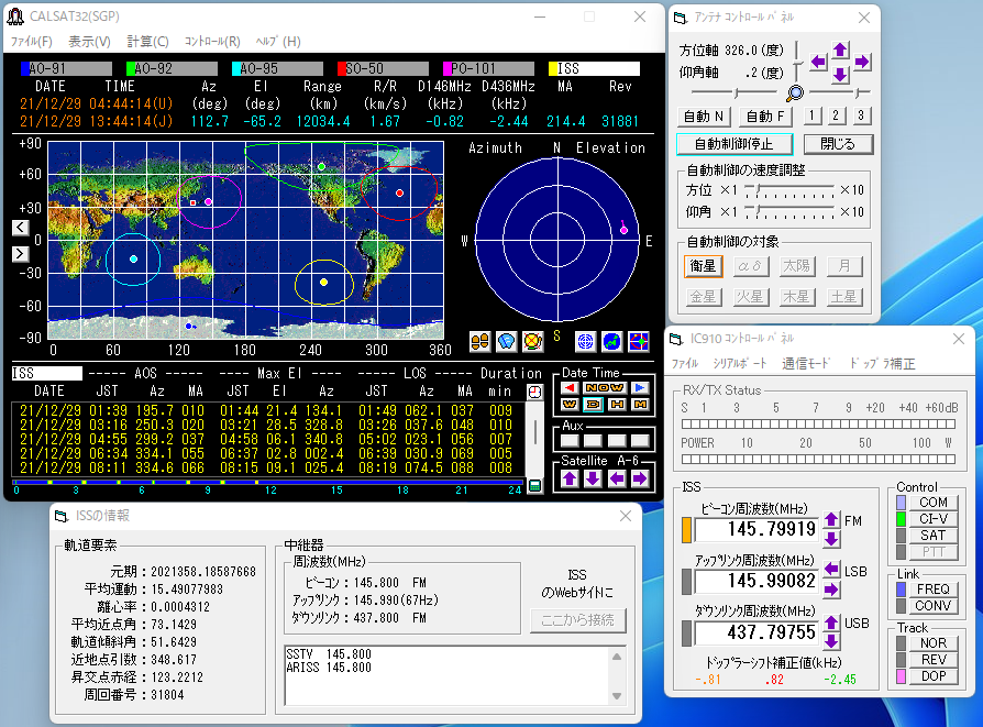今年はCALSAT32でISSを追尾しています。(方位角のみ) 参考:「CALSAT32 アンテナコントロール 設定」