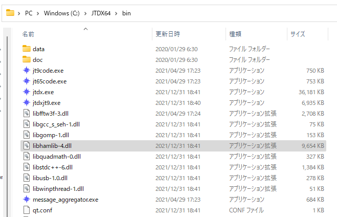 これにより、hamlibがバージョンアップされた場合にlibhamlib-4.dllのみ差替えれば良くなります。