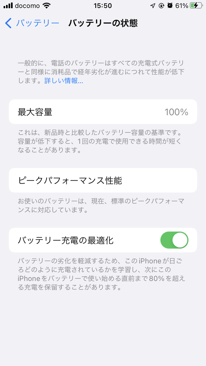 今のバッテリーは互換バッテリーですが、バッテリーが劣化しているのにバッテリーの最大容量は100%を表示します。