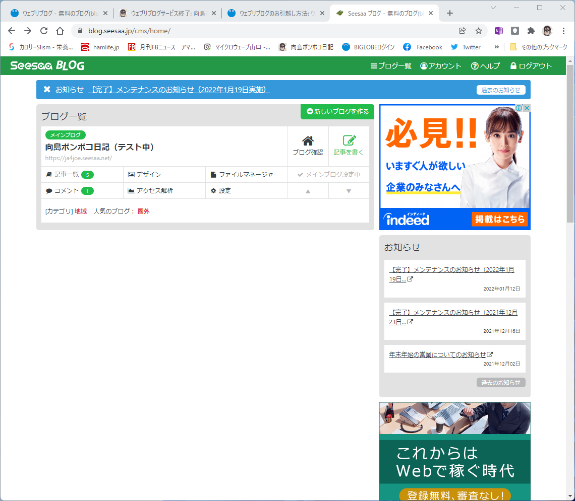 専用移行ツールが提供される4月までに他のブログも検討してどうするか決めたいと思いますが、Seesaaブログならあまり手間はかから無さそうです。