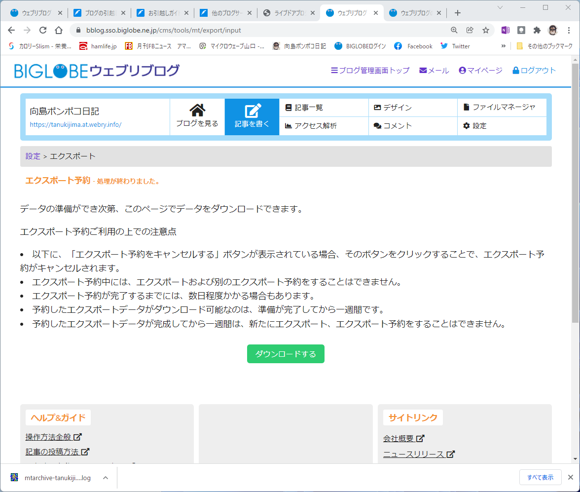 ファイルが大きいので予約方式になりました。予約方式だと一週間は新しいエクスポートが出来ません。