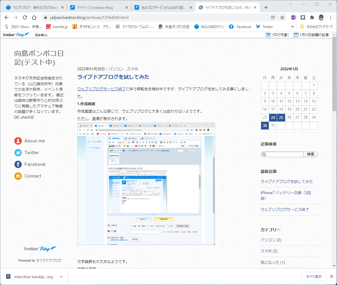 ウェブリブログサービス終了に伴う移転先を検討中ですが、ライブドアブログを試してみました。