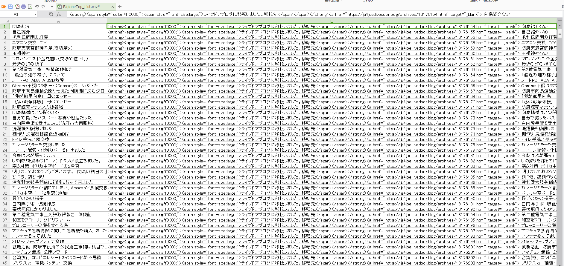 新ブログのブログ内リンク変換のために作ったウェブリブログ記事アドレスリストを加工して以下のようなリストを作りました。