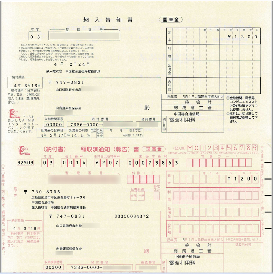 昨日、1月27日に開設届を提出したデジタル簡易無線の電波利用料納入告知書が届きました。