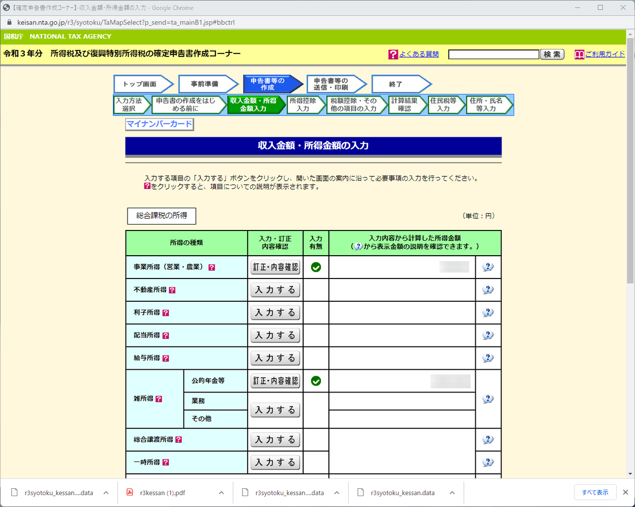 農業所得は先に収支内訳書を決算書・収支内訳書作成コーナーで作成しました。