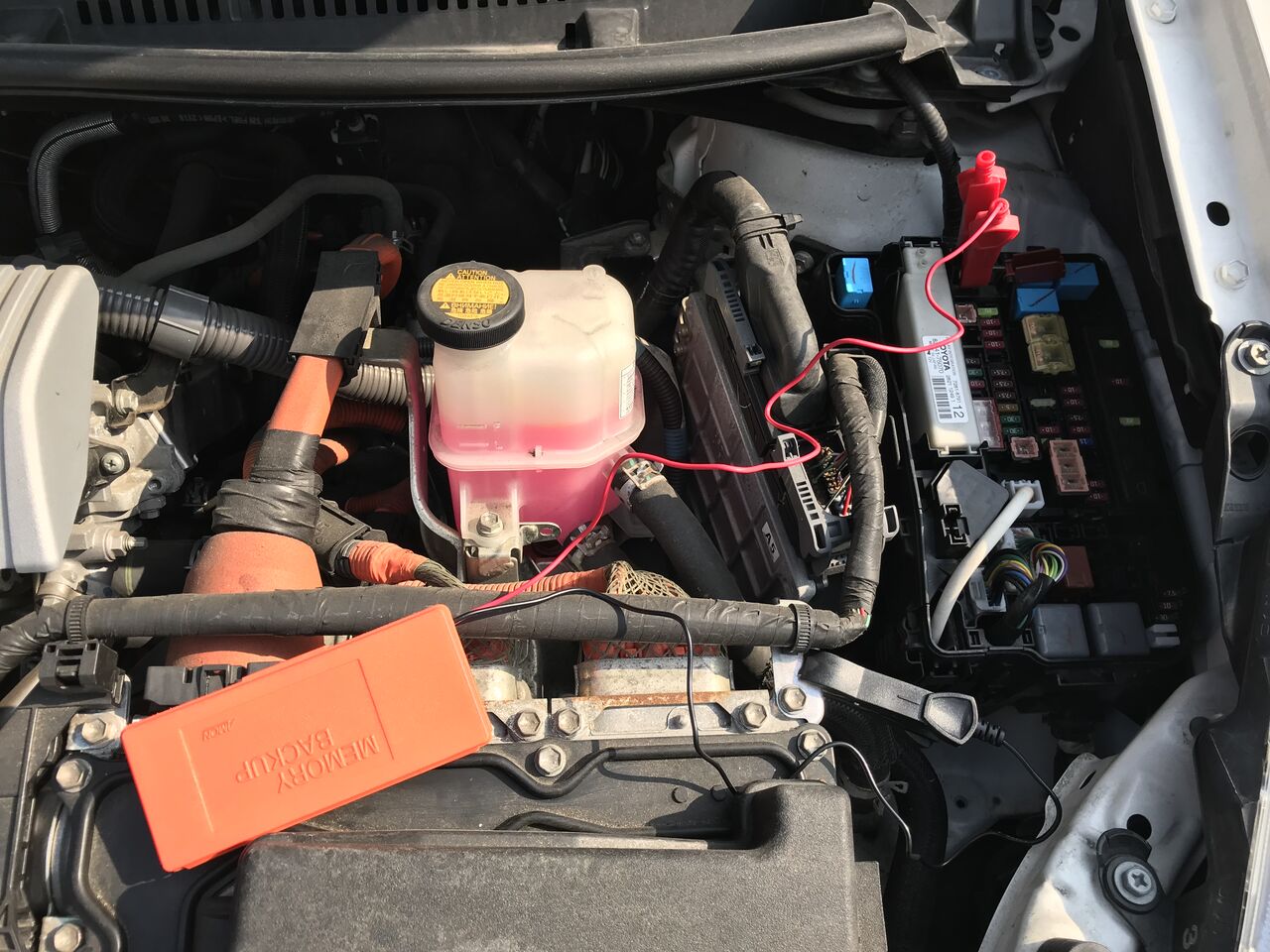 他に交換時にバックアップ電池を使ってバックアップしないと、バックモニタカメラ位置調整、パワーウィンドウの初期化が必要、NAVIの燃費記録が消えるなどの問題があるのでバックアップ用電池BOXが必要です。バックアップ用電池BOXは前回使ったものがありました。
