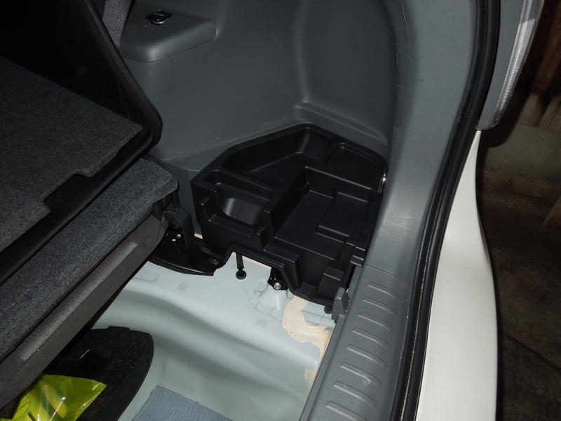 ④ 補機バッテリーのあるラゲージルームの物入れBOXを外してから、右のカバーを外します。