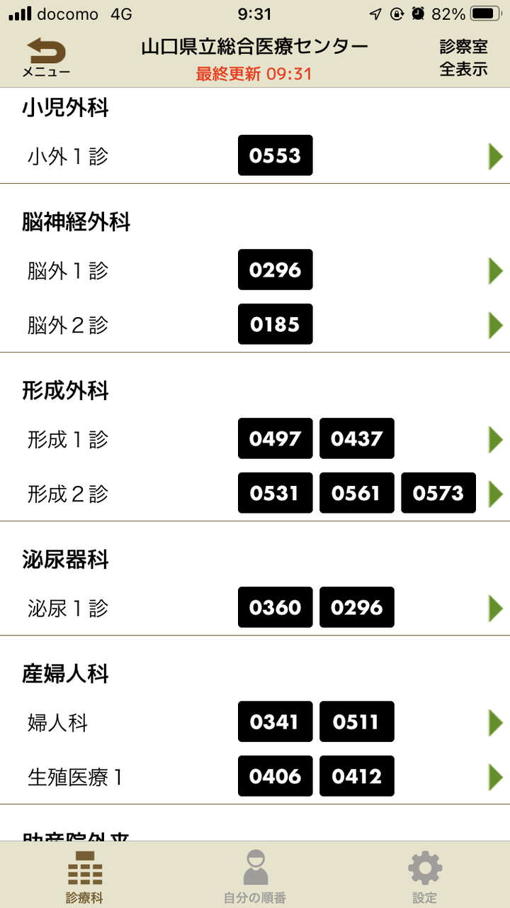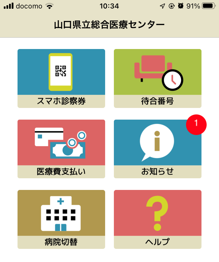 診察待ちの間に、Sma-paのもう一つの機能の「診察受付番号確認サービス」を試してみました。