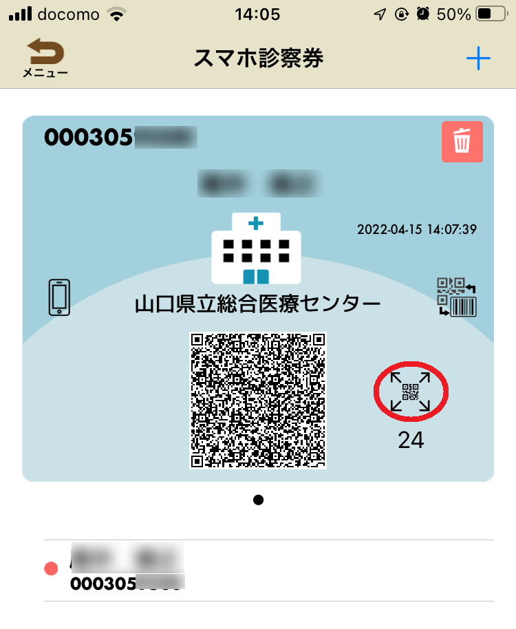 最初にスマホ診察券の登録を行いました。診察券情報をスマホに読み込みます。