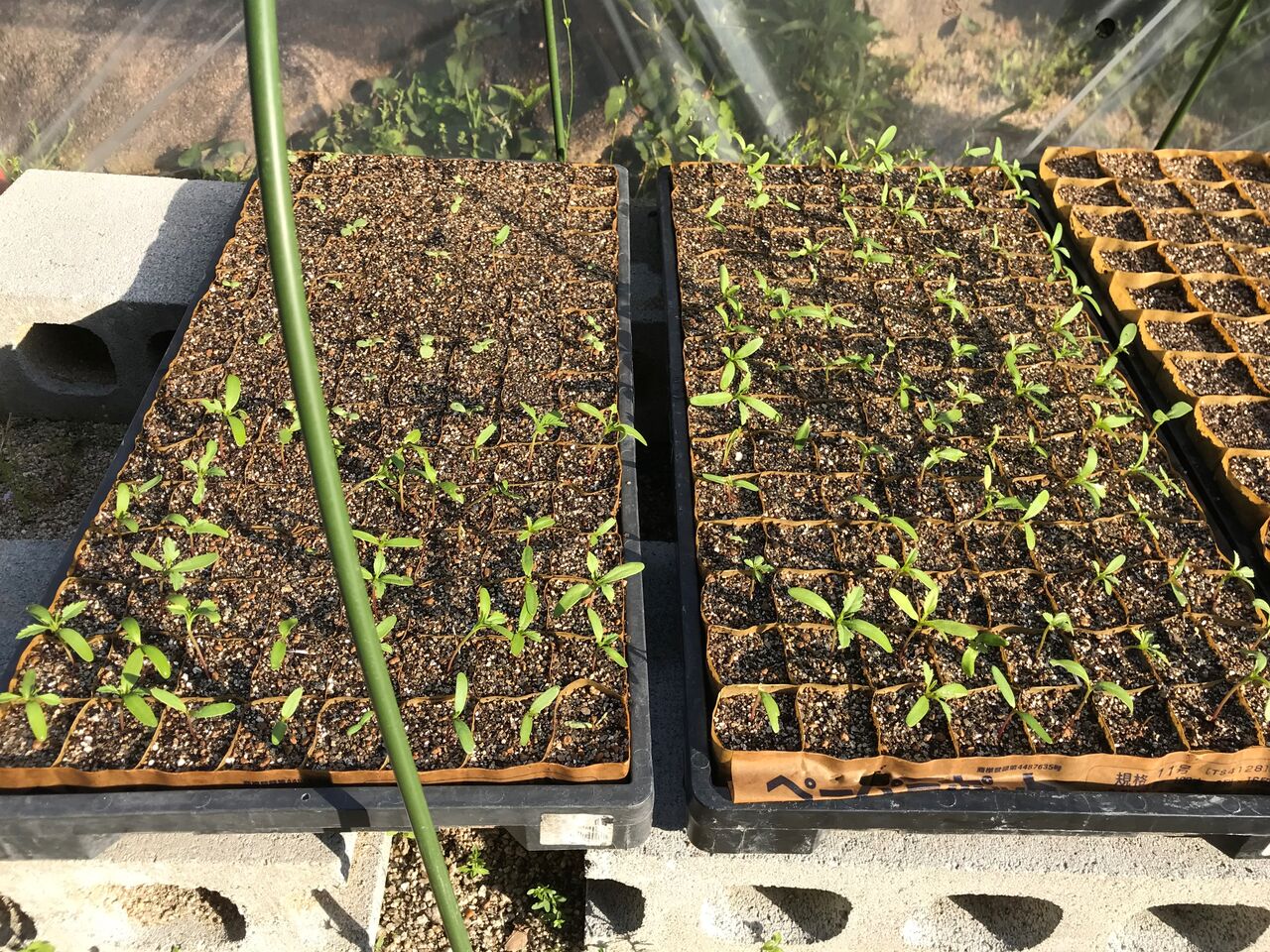 4月4日に種を蒔いたエダマメとスィートコーンの苗が育っています。