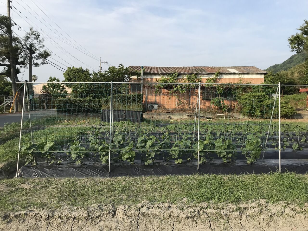 西側畑の金ウリ畝は5月10日にメロンウリを植えてありましたが、一緒に育てた金ウリの苗は全滅したので新規に育てていました。植付が2週間遅くなりましたが、今度はちゃんと苗が出来ました。