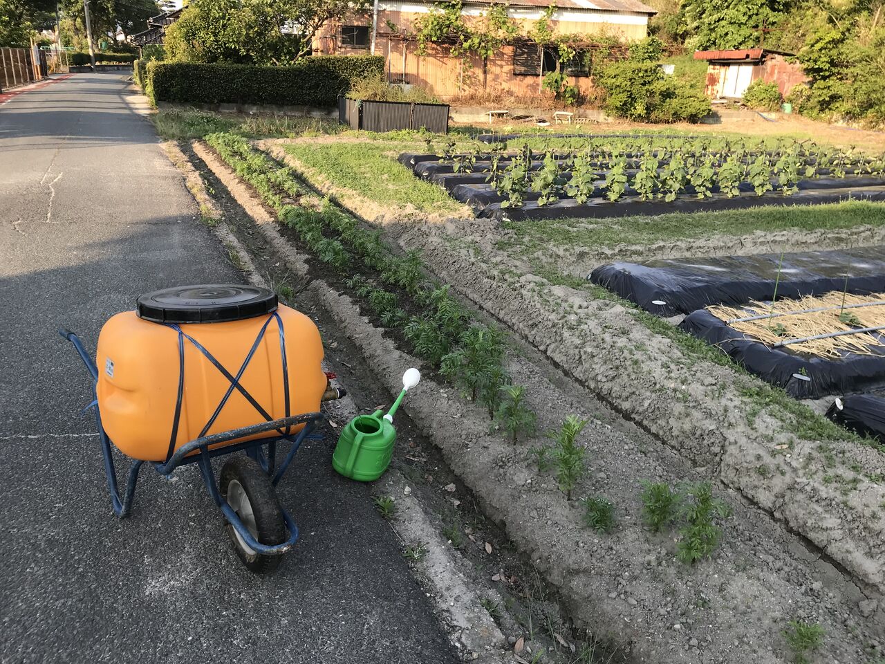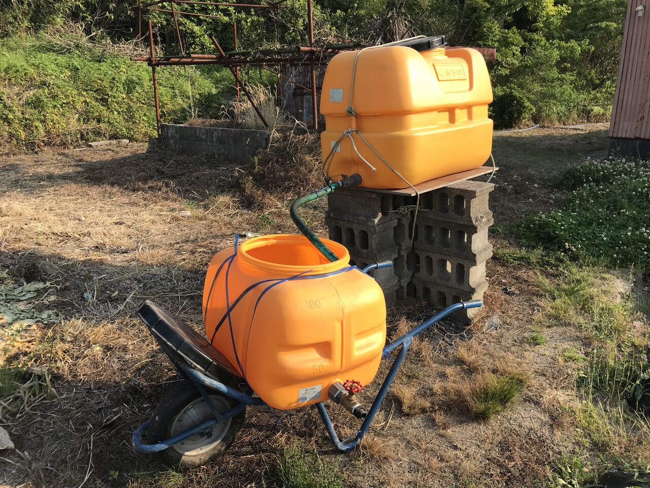 昨年も設置しましたが、5月22日に東側畑に給水用タンクを設置しました。