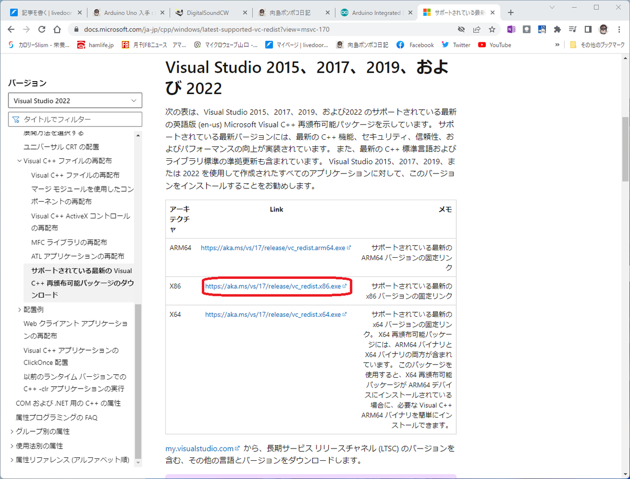 この時に「mfc140u.dll が見つからない」というメッセージが出る場合はMicrosoft Visual C++再頒布可能ライブラリのX86用をダウンロード、インストールしてください。