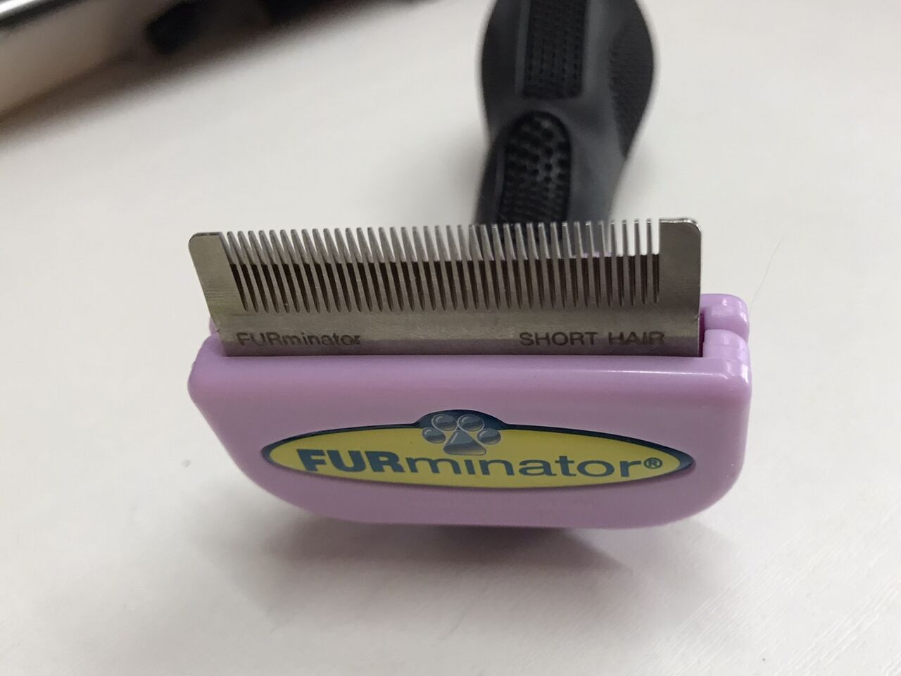 誕生日プレゼントという事でもないのですが、ブラッシングが大好きな花ちゃん用に新しいブラシを買いました。ファーミネーターと言う抜け毛が良く取れるブラシです。ブラシと言うよりクシですね。