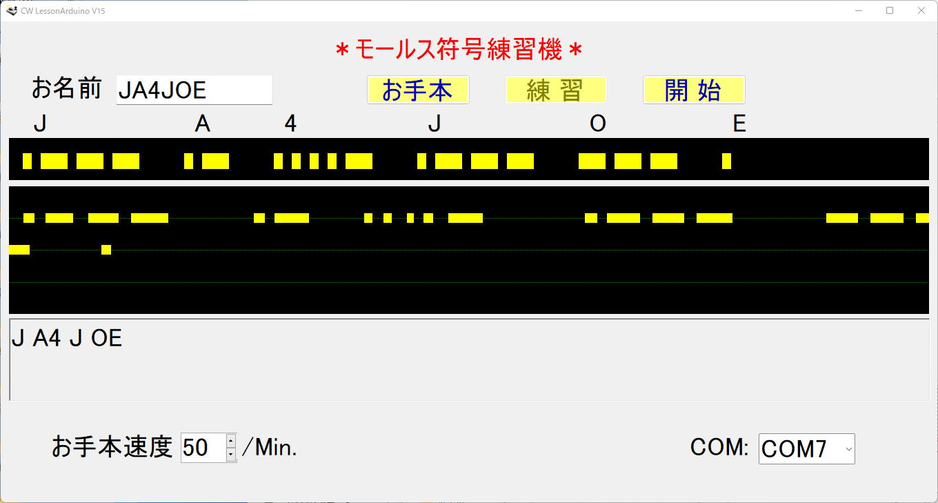 先日の「アマチュア無線を楽しもう!」イベントのモールス送信ゲームでCW Lesson Arduinoというソフトを使いましたが、タイムアウト後に入力できなくなるなどの問題がありました。