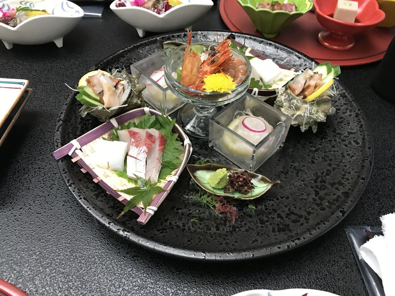 夕食は刺身盛りやフグ揚げなど豪華な食事で、ビールが美味しかったです。