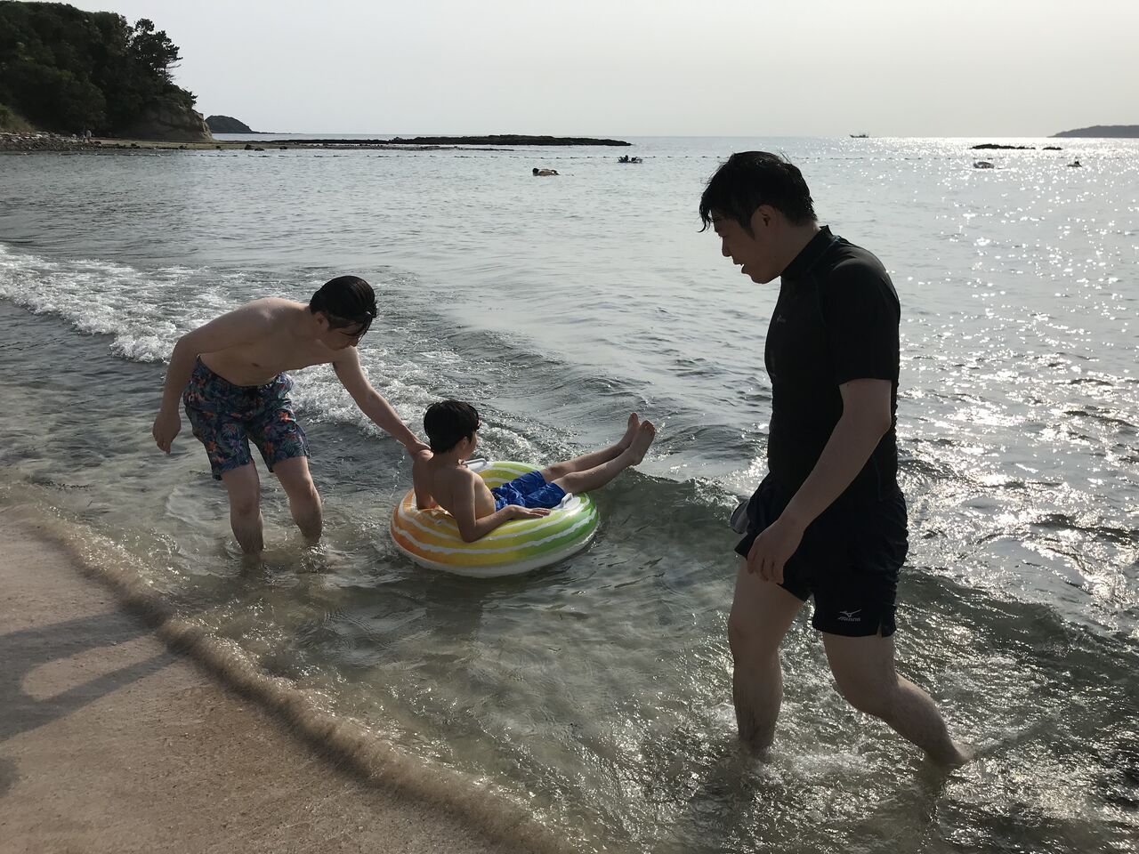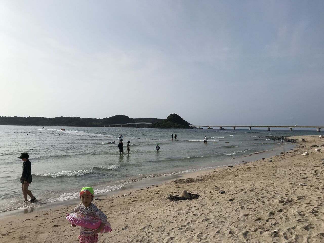砂浜は遠浅で石が多いのでかなり沖まで出ないと泳ぎにくかったですが、少しならちゃんと泳げました。でも長く泳ぐのは無理です。(^^;
