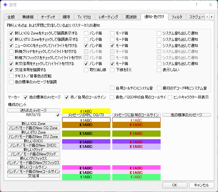 次にJTDXの各種設定を行います。以下は私の設定なので参考にして設定してください。
