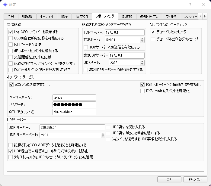 eQSL.ccに登録した コールサイン/パスワード/QTH Nickname をJTDXに設定するので覚えておいてください。