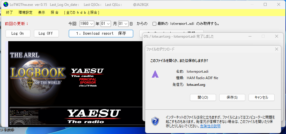 (2024年4月20日 追記)LoTW2Thw をダウンロード出来ない場合、以下を参考にしてください。