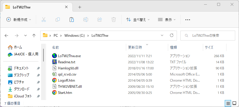 LoTW2Thw_015.zipをダウンロードして適当なフォルダーに展開します。今回、C:¥ 直下にLoTW2Thwフォルダーを作って展開したファイルをコピーしました。