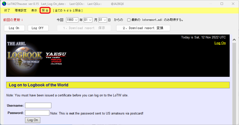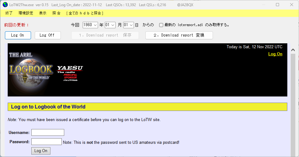 LoTW2ThwはJA2BQX 太田OMが提供されているソフトウェアです。