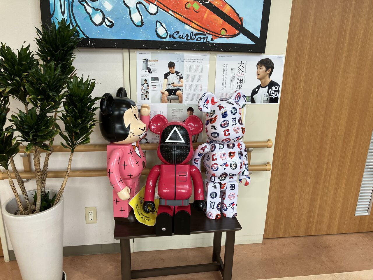 くらしげ整形外科クリニックの待合室に熊の人形が飾ってあります。調べたらベアブリックという熊だそうです。