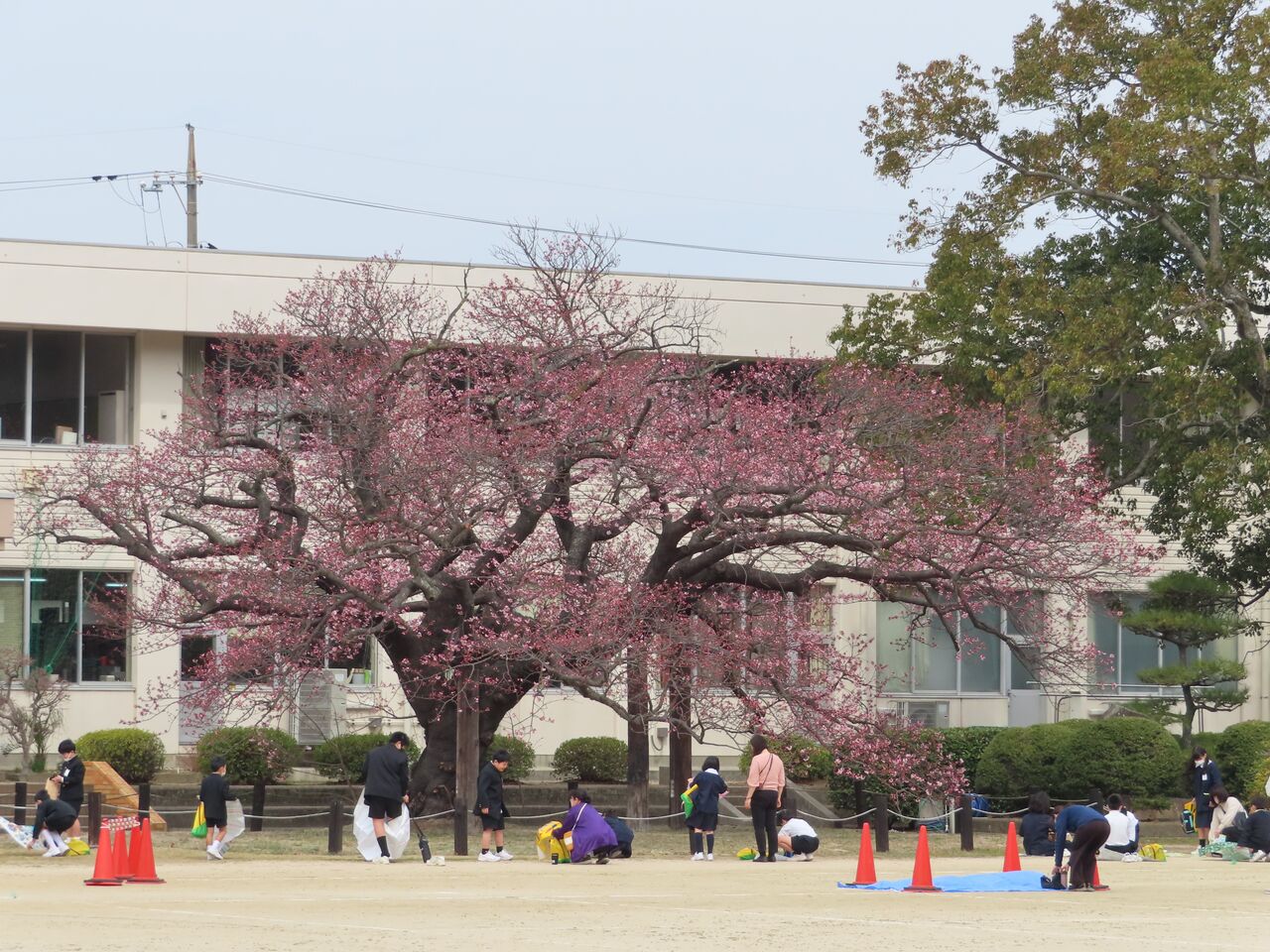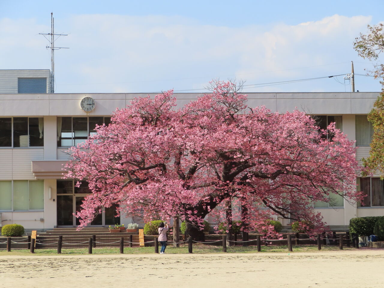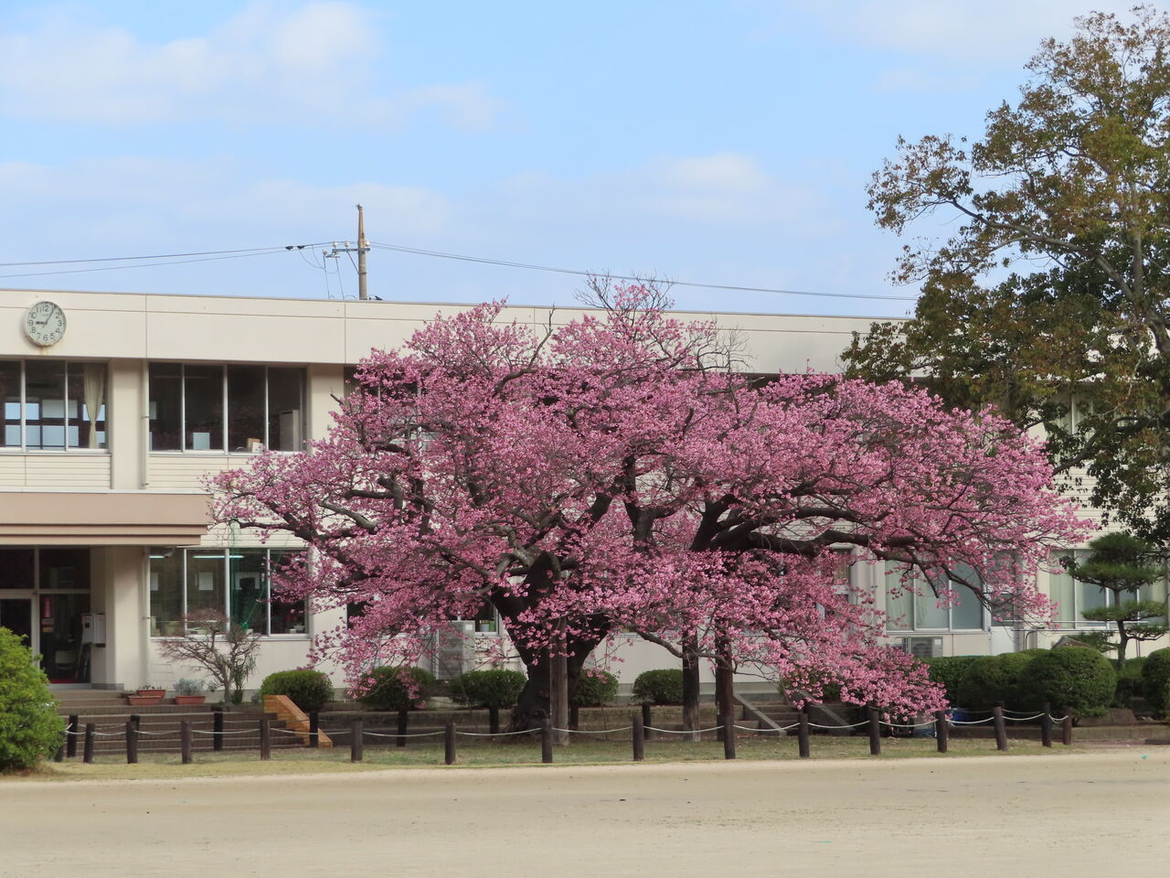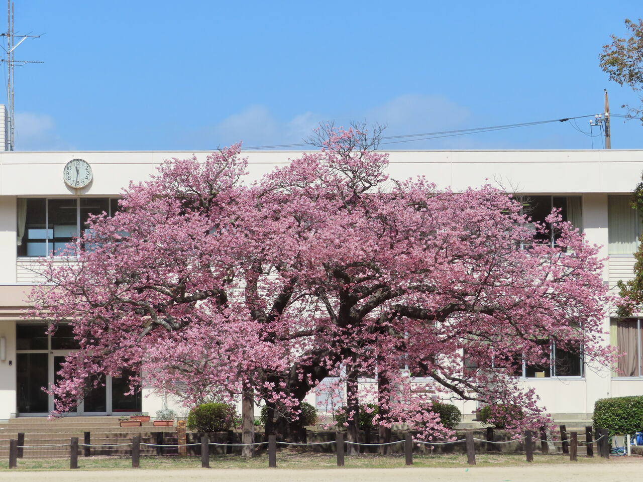 向島小学校 寒桜(向島蓬莱桜)開花状況 2024年
