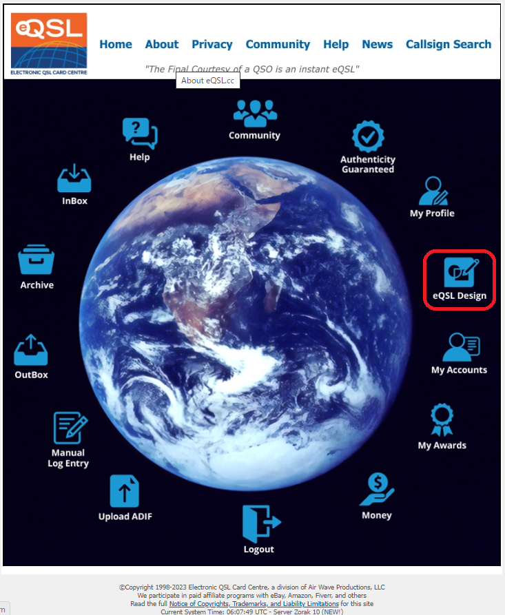 eQSL.ccのホーム画面の「eQSL Design」を選びます。