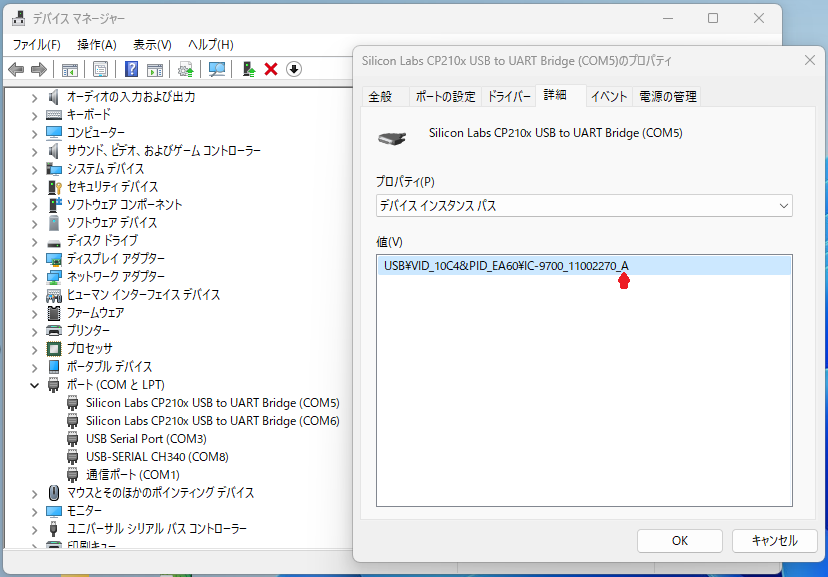 私の環境ではCOM5とCOM6です。